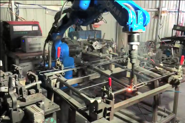 焊接機(jī)器人是從事焊接(包括切割與噴涂)的工業(yè)機(jī)器人。根據(jù)國際標(biāo)準(zhǔn)化組織(ISO)工業(yè)機(jī)器人屬于標(biāo)準(zhǔn)焊接機(jī)器人的定義,工業(yè)機(jī)器人是一種多用途的、可重復(fù)編程的自動(dòng)控制操作機(jī)(Manipulator),具有三個(gè)或更多可編程的軸,用于工業(yè)自動(dòng)化領(lǐng)域。為了適應(yīng)不同的用途,機(jī)器人最后一個(gè)軸的機(jī)械接口,通常是一個(gè)連接法蘭,可接裝不同工具或稱末端執(zhí)行器。焊接機(jī)器人就是在工業(yè)機(jī)器人的末軸法蘭裝接焊鉗或焊(割)槍的,使之能進(jìn)行焊接,切割或熱噴涂。